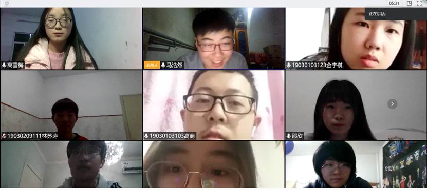 会议由新媒体协会部长马浩然主持。首先,由新媒体协会会长高雪梅对前期视频制作及宣传力度、创新形式等方面进行点评与总结,并鼓励在疫情期间各干事积极参与部门工作,为公司的宣传工作贡献自己的力量和积极发挥正面引导作用。同时,她还指出疫情的严峻性,要求各干事与身边的同学多联系,关心他们的生活学习等方面,普及防控防疫等各方面措施。随后,马浩然对新学期短视频大赛、疫情正能量宣传系列活动进行分类安排与部署,要求大家积极准备,做好赛前的各项工作,确保大赛有序开展,利用活动起到最好的正面引领作用。最后,高雪梅就疫情期间网课的重要性做了说明,督促各干事认真学习,做到不懈怠、不懒散,扎实功课预习工作。至此,本次会议圆满结束。