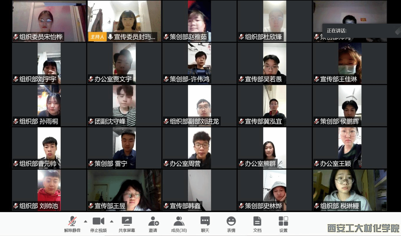 此次例会在宣传委员封玙欣的主持下正式开始。首先,由团委副书记沈守峰对团委后期的工作进行安排,并且强调尽管是线上工作,团委干事也应端正工作态度,明确工作任务,将每次活动尽力做好。紧接着,由组织委员宋怡桦对西工印记出现的问题进行详细的总结及说明,要求大家认真对待每一次的工作。随后,由团委各部门负责人对本部门前半学期所举办的活动进行总结,指出不足之处以及改正措施,并表示会在以后的工作中不断完善。最后,封玙欣讲到团委干部换届将近,希望有意愿的干事积极竞选,将公司团委的优良传统继续发扬传承。至此,本次会议圆满结束。