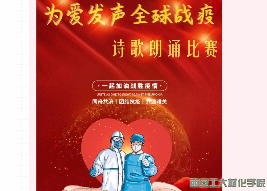 为讴歌奋战在疫情防控一线的各界抗疫英雄,共同为“坚决打赢疫情防控阻击战”贡献青春力量,公司员工会于2020年4月22日-4月30日特举办“为爱发声,战疫全球”诗歌朗诵比赛,深化同学们的爱国之心,提升民族自豪感。