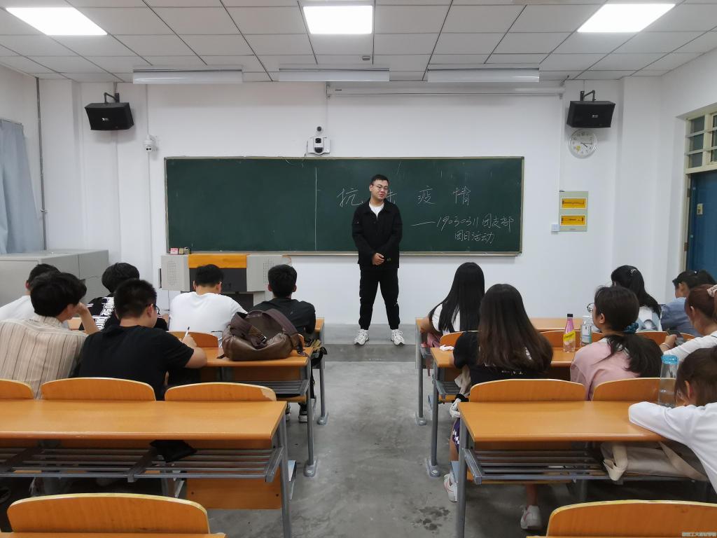 在团支书刘宇宇的主持下对我国的疫情目前的整体情况进行简单的讲述,并指出本次主题团日活动皆于提升青年的社会责任感,展现当代青年学子的时代风貌,为抗击疫情贡献自己的一份力量。随后,由在疫情期间做过志愿服务的冯言阳同学和王彦峰同学向大家介绍他们的主要事迹以及自己的心得体会,两位同学的阐述都表达了为抗击疫情而无私奉献的精神,也深深的感染了团支部的每一位同学。由在2020年暑期社会实践活动中以抗击疫情为主题的王颖同学介绍自己的实践活动过程以及自己的实践心得,王颖同学也鼓励同学们积极的参与抗击疫情的有关志愿活动。至此,本次团日活动圆满结束。