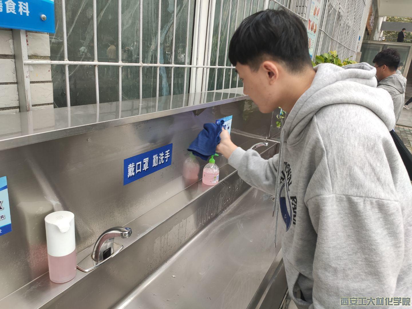 本次活动主要内容为餐厅扶梯及洗手台的义务打扫,活动在由负责人讲述活动具体内容及宣布活动注意事项后顺利开展。志愿者有序进行分组,对餐厅内外的扶梯以及餐厅外的三个洗手台进行彻底打扫,确保每个卫生死角都能被打扫干净。志愿活动中,每位同学都积极参与,充满热情的投入工作状态,人人之间相互配合,甚是默契。虽然“汗水与尘土齐飞”,但是同学们脸上都洋溢着快乐的笑容,深刻体会着奉献精神的永恒和伟大。
