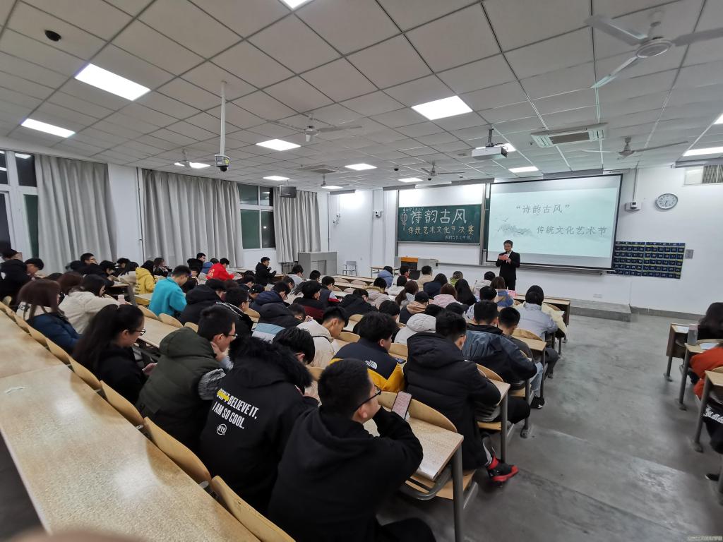 本次活动在团委组织部干部王涛主持下顺利召开。会议伊始,由主持人王涛向大家介绍决赛比赛规则:晋级选手每人挑选一首自己喜欢的诗或词进行风采展示,表现形式灵活多变,由评委进行打分。接下来,由各位选手按照比赛顺序依次上台,以讲解PPT、演讲、唱歌等形式向大家展示自己对诗词的独特见解,观众和评委都被参赛选手的演讲深深打动。随着同学们精彩的展示结束,主持人王涛为大家播放了中国诗词大会飞花令的精彩视频,大家也被中国诗词的独特魅力深深打动。最后,主持人为大家宣布了本次比赛的获奖情况并颁布了奖项。至此,本次比赛圆满结束。