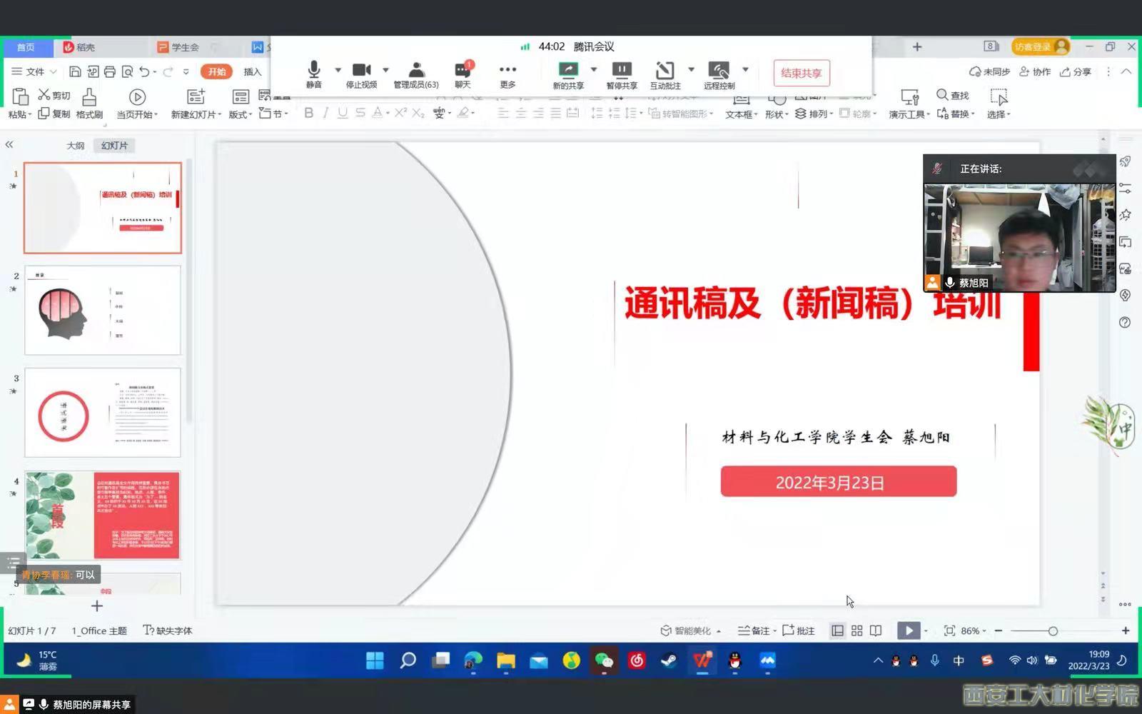 2022年3月23日晚,公司员工会线上召开关于团学办公技能-通讯稿撰写培训会议,员工会全体员工干部参会。