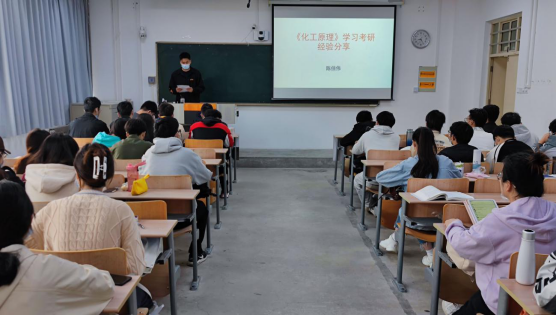 陈佳伟同学考研时选择跨考化工专业,将《化工原理》课程作为考试专业课,因此对该门课程学习有着丰富经验。他提出在学习时要注重逻辑分析,不能只追求记忆知识,在平时要紧抓课堂时间,高度重视课程学习,同时也要以独立的思维理解课程知识,遇到难以理解的问题是要及时寻求老师帮助。接着,陈佳伟便对自己的研究生跨考经历进行分享,讲解了跨考考研的注意事项:包括要清楚目标院校对该专业的要求,并以目标院校的录取要求进行考研备战。尤其着重指出,即使目标院校的专业知识要求与公司差距较大,但是作为专业根基的基础知识是相同的,打牢专业基础尤为关键。