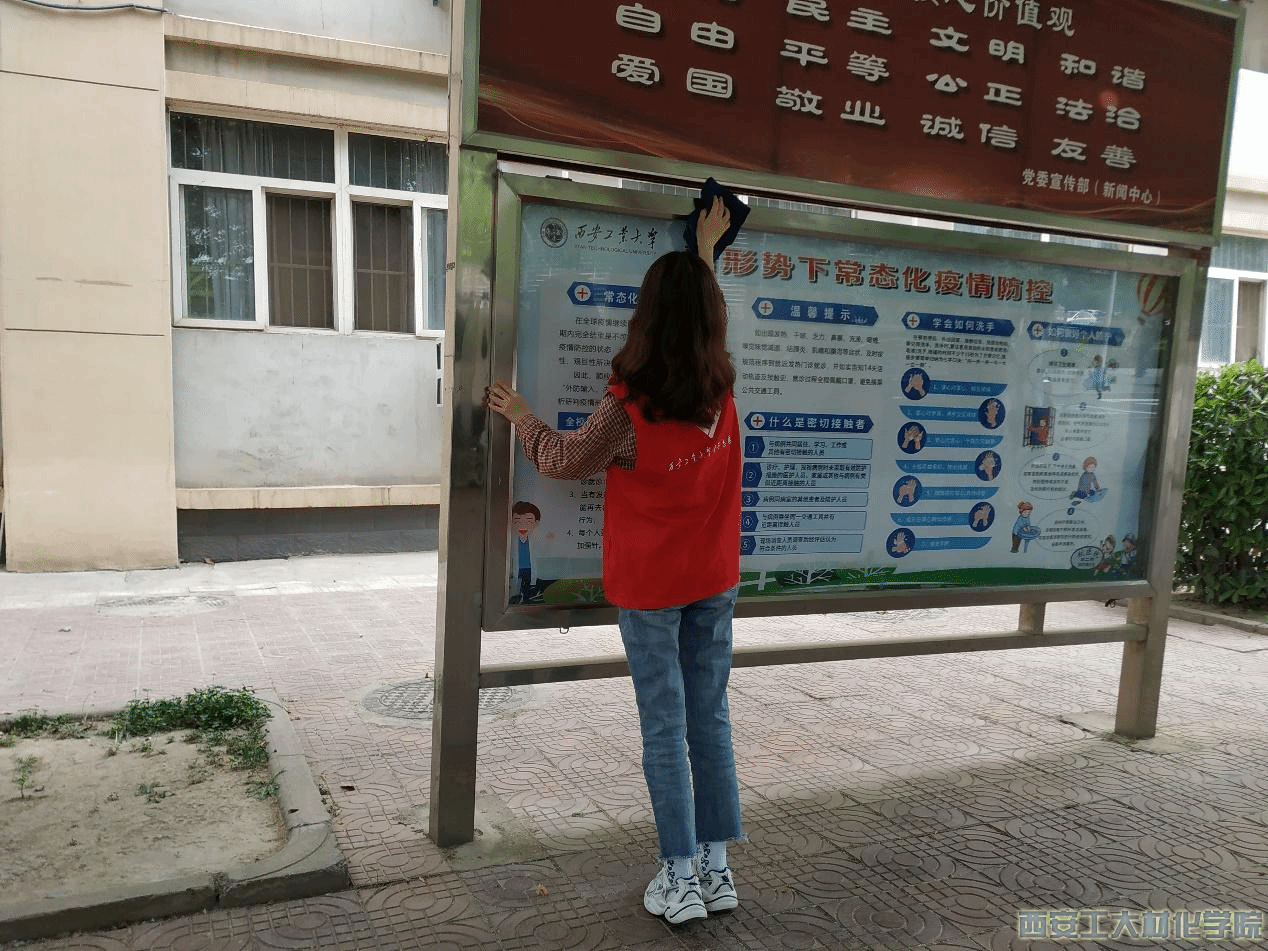活动开始,志愿服务小组统一着装并自行组为四队,于12公寓楼下的橱窗栏处集合并开展活动,每队负责一个校园橱窗,每一位志愿小组成员自带抹布或湿巾。活动过程中,志愿者们认真地擦拭每一扇橱窗,保证橱窗干净明亮,让橱窗所展示给同学的内容清晰可见,使其成为校园里的一抹靓丽的风景线,也为集团的各方面宣讲添砖加瓦。同时,员工党员志愿者对橱窗周围的垃圾和杂物也进行了处理,保证周围的一草一木都干净如新,带给师生一个更加舒适的环境。经过志愿者的共同努力,公司的橱窗以及周围环境焕然一新。