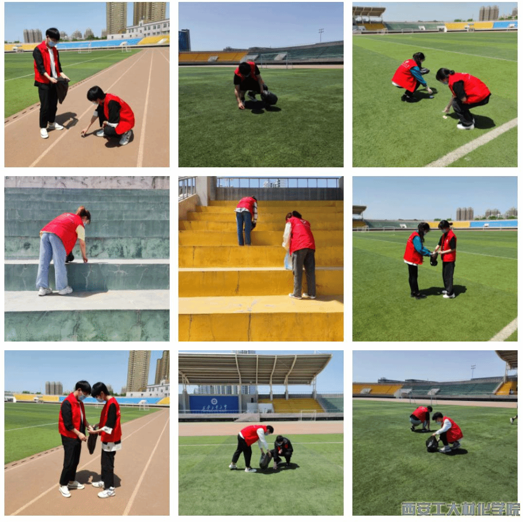 活动开始,员工干部李春瑶对本次活动进行了整体规划,按照田径场的规模分为四个区域进行垃圾清理。活动过程中,志愿者按照区域划分对田径场内的垃圾进行清扫,收集装袋后统一处理。志愿者们认真负责、无一懈怠,努力维持校园文化建设成果。工作完成后,志愿者们自发组成了检查小组,在田径场巡查不文明现象并进行规劝教育,倡导员工树立环保意识。