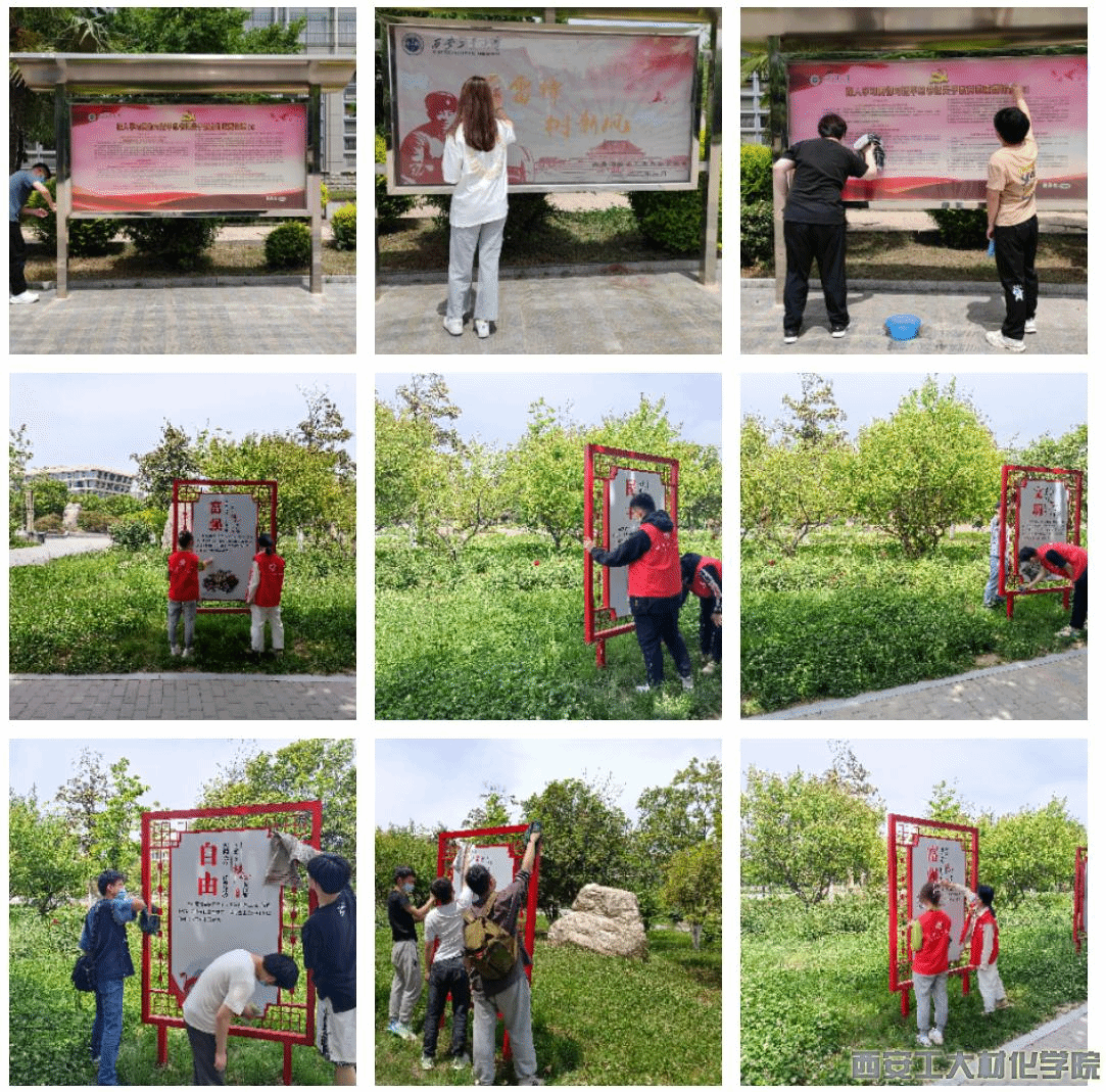 活动开始前,青年志愿者协会对所有参加活动的员工志愿者进行分组并组织签到,同时了讲解志愿活动的整体时间、区域等内容安排。活动过程中,志愿者们携带工具认真地擦拭着校园内的展板与橱窗,确保橱窗内容可以清晰地呈现给员工,尽自己努力推动公司宣传教育工作的开展。同时,志愿者们自发对橱窗周围的杂物进行了清理,努力营造出干净整洁的校园宣传环境。活动结束后,工作人员组织志愿者合影留念,展示材化学子积极向上的精神风貌。