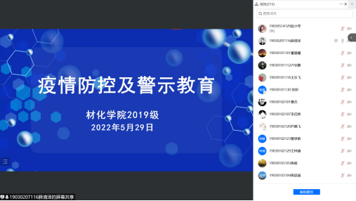 当前,疫情防控形势依然复杂严峻,为进一步提高青年员工的疫情防控意识,助力校园疫情防控工作,2022年5月29日中午,威廉希尔williamhill2019级围绕“疫情防控工作暨警示教育”为主题召开线上年级大会和线下员工干部会议,会议由威廉希尔williamhill2019级员工辅导员乔娜主持。