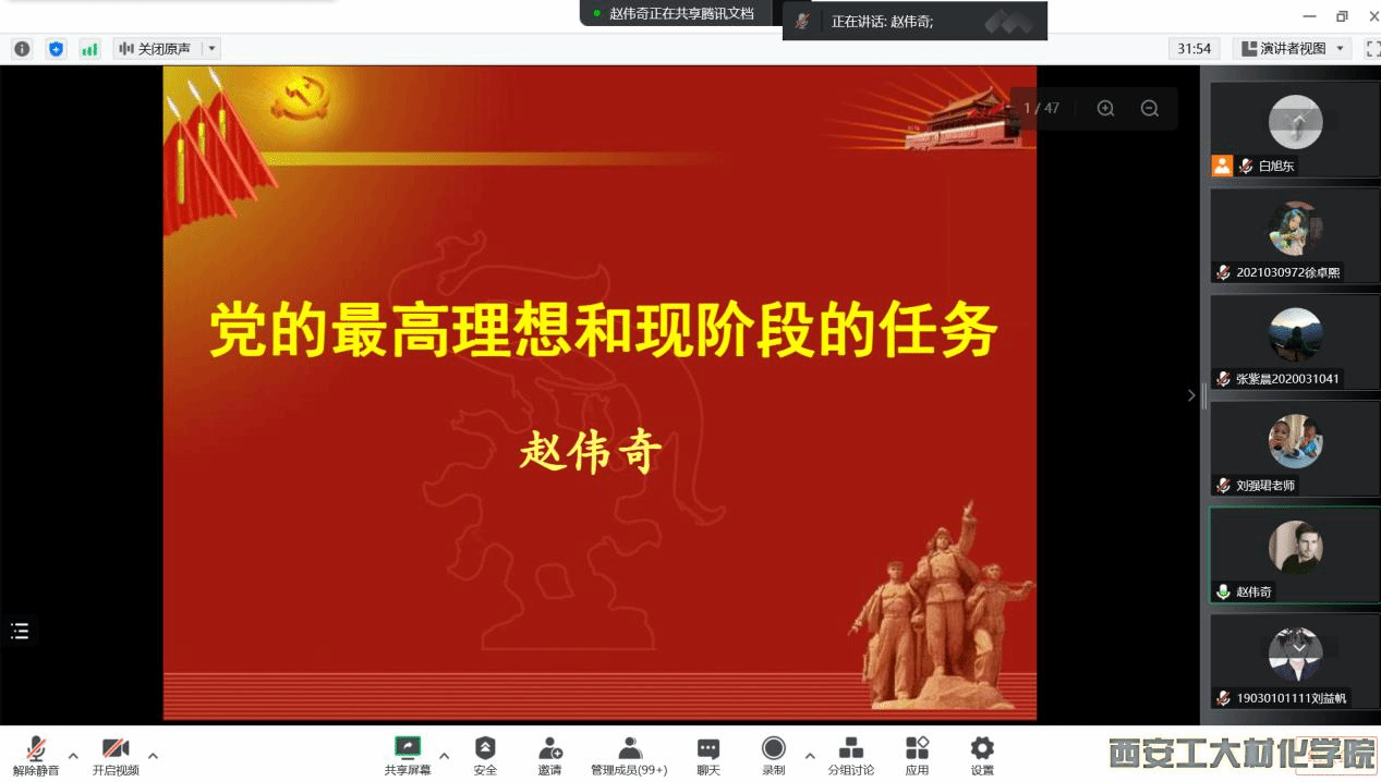 为认真做好发展党员工作,进一步提高入党积极分子的思想政治素质,坚定入党信念,威廉希尔williamhill分党校于2022年11月3日开展以“党的最高理想和现阶段的任务”为主题的理论培训。本次培训由williamhill党委组织部赵伟奇老师主讲,培训班全体成员参会。