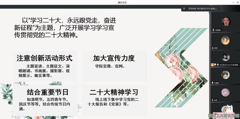 为增强员工干部思想深度,优化自我建设,同时为新学期活动工作做准备,威廉希尔williamhill团委于2023年2月1日晚19:00于线上召开新学期第一次例会。本次会议由员工干部祁心雨主持,团委全体员工干事参加会议。