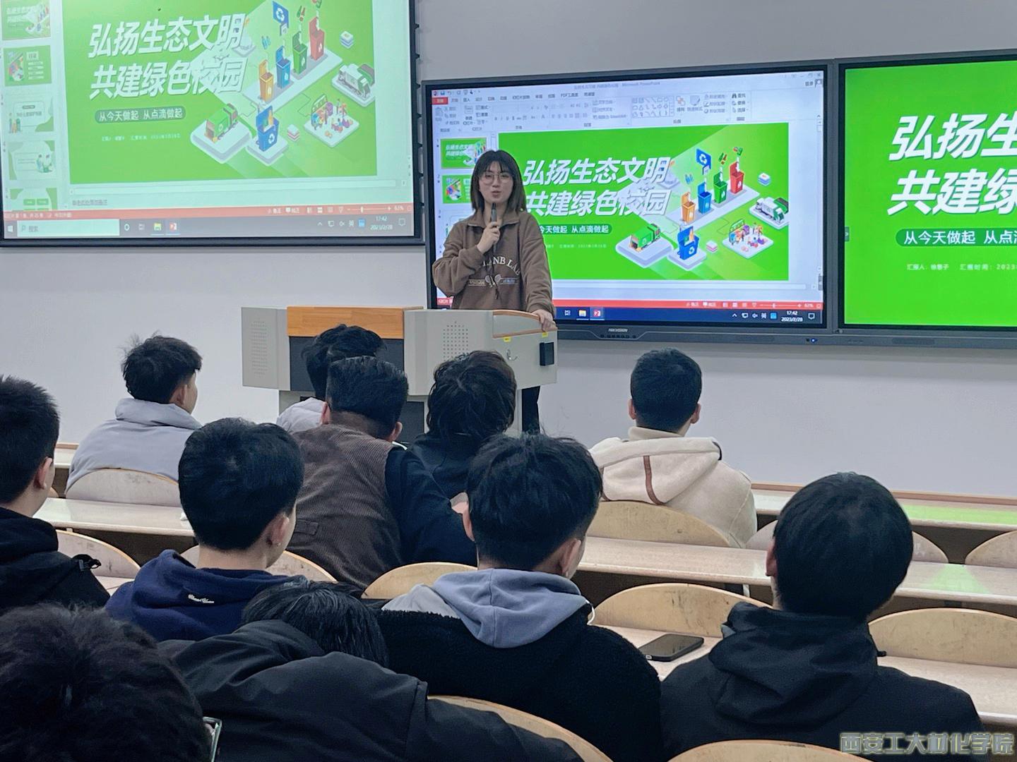 为深入学习贯彻习近平生态文明思想和党的二十大精神,2月28日下午,威廉希尔williamhill2020级在教2-103教室隆重举行“弘扬生态文明,共建绿色校园”主题教育活动,本次活动由2020级辅导员徐慧子主持,2020级全体员工参与本次活动。