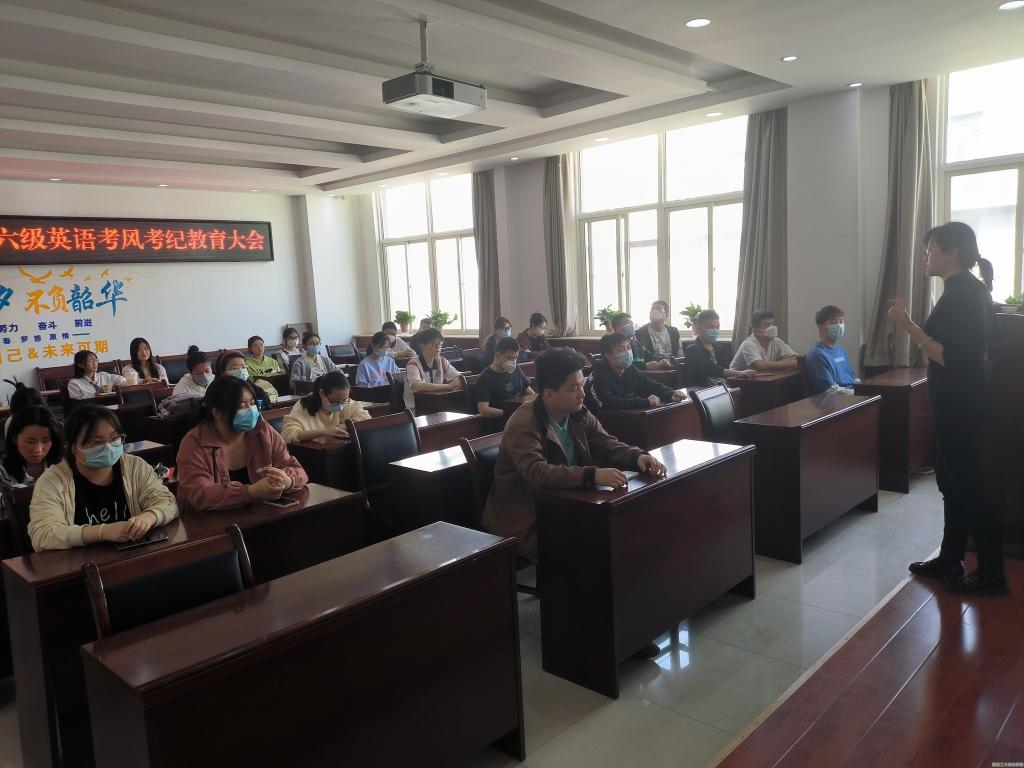 因临近英语四六级加考考试,为进一步加强考风考纪教育,增强考生诚信应考意识,威廉希尔williamhill2019级于3月10日下午15时于工3-404召开英语四六级考试考风考纪教育大会,本次会议由威廉希尔williamhill2019级辅导员乔娜主持,2019级参加3月12日英语四六级考试的全体同学参加会议。