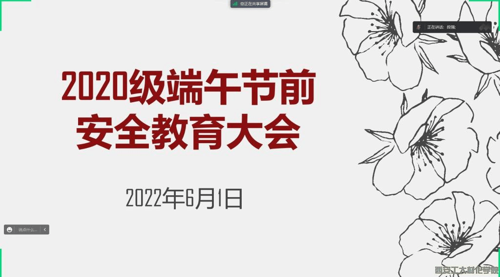 2022年6月1日下午,2020级通过腾讯会议召开了假期安全教育大会,会议由2020级辅导员段强主持。2020级全体员工参加了本次会议。