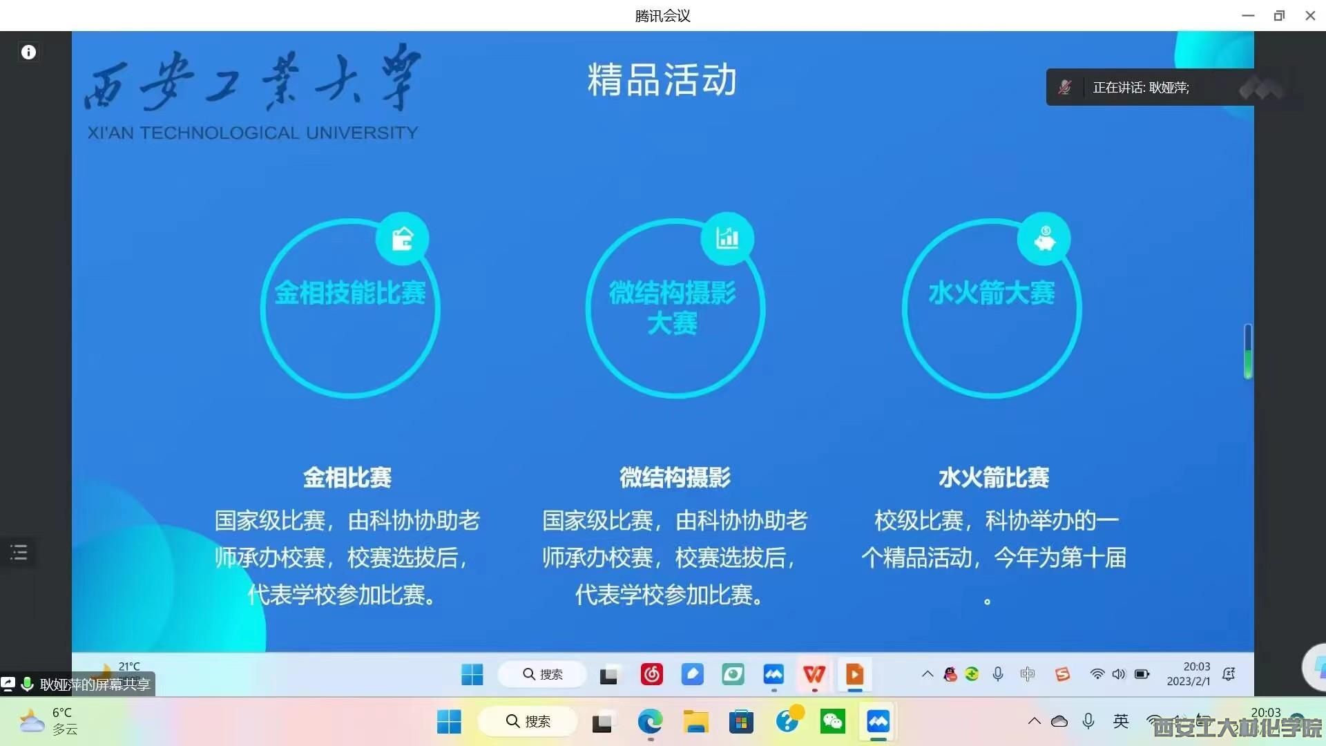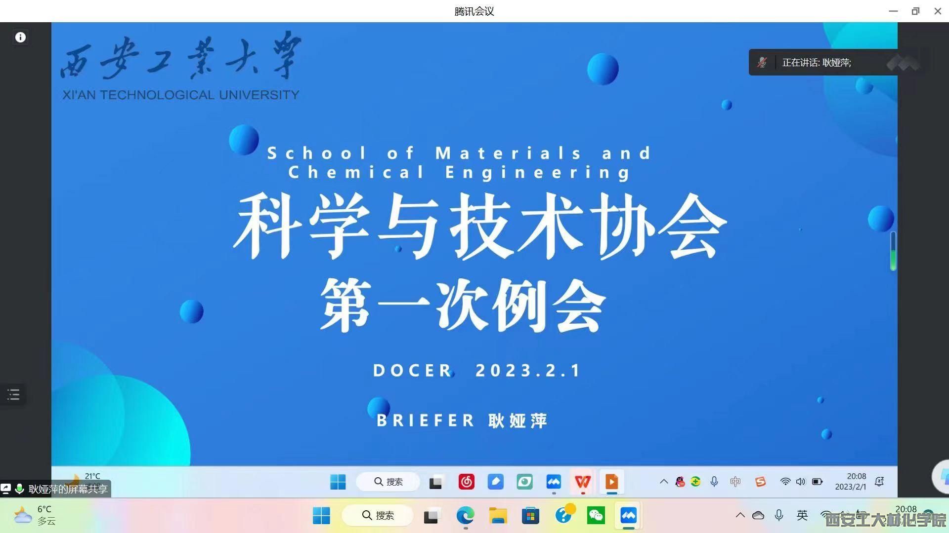 新年新气象,喜兔送祝福,为使新学期活动更好地开展,科学技术协会于2023年2月2日晚上八点在腾讯会议准时召开会议,讲解新阶段的工作,科学技术协会全体成员参加会议。