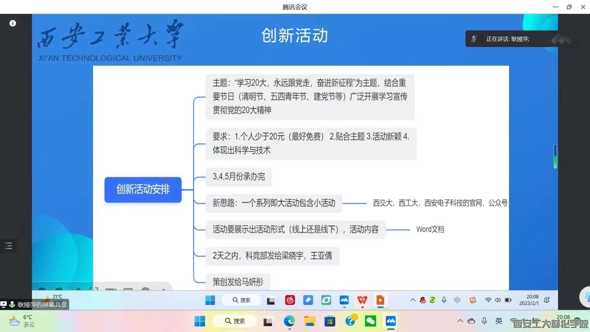 本次会议的主持人是员工干部耿娅萍。会议伊使,耿娅萍向全体参会人员表达了诚挚的新年祝福,其他成员同时也向彼此送出了新年祝福。接下来,耿娅萍开始部署新学期工作,她指出新学习的活动策划要围绕“学习二十大,永远跟党走,奋进新征程”这一主题,同时结合科学技术协会的组织特色——科技与创新。结合主题和要求,成员纷纷提出了自己对新学期活动策划的意见和建议,明确了活动的形式和内容,为新学期活动的顺利开展打下基础。