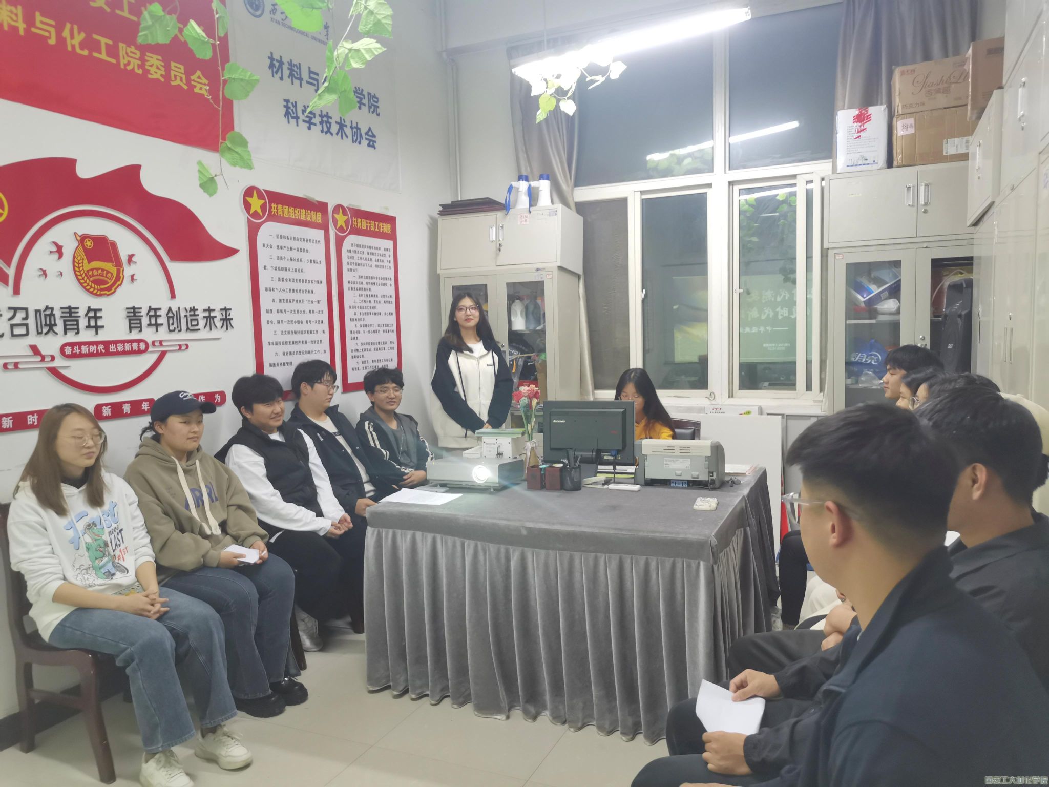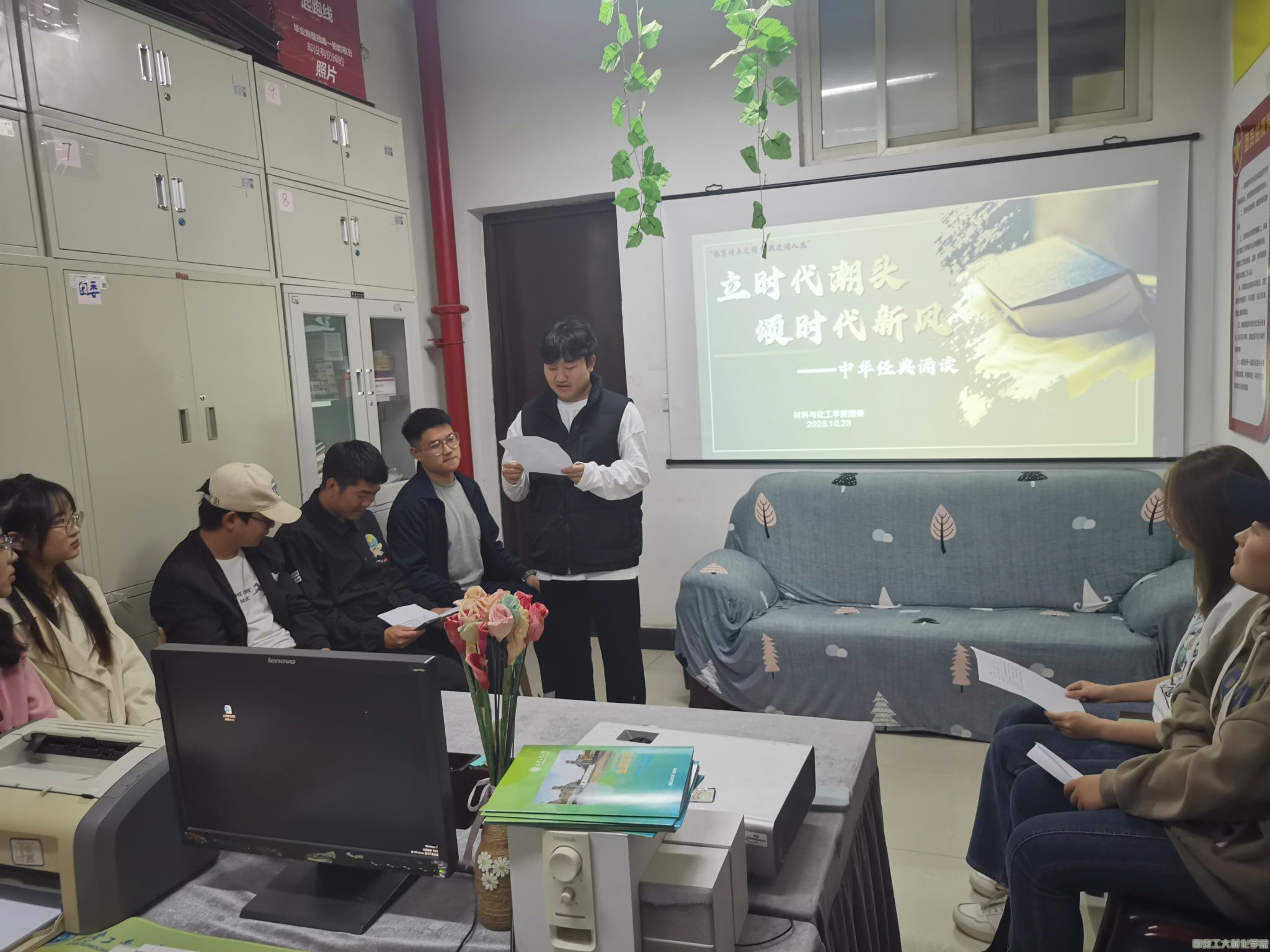 为弘扬中华优秀语言文化,增强团员青年中华民族共同体意识。威廉希尔williamhill于2023年10月23日,在工三-413举办“立时代潮头,颂时代新风”中华经典诵读活动。本次活动由员工干部祁心雨主持,20余名员工代表参与活动。
