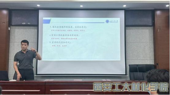 会议第一阶段,段强围绕员工干部综合能力提升重要性进行讲述,并结合工作实际,从活动策划、理论学习、办公技能、通讯稿撰写四个方面进行重点强调和提出要求,其中以通讯稿为例,段强通过列举多篇不同类型的范文,从主副标题、正文分层、结尾意义三个部分进行培训,详细讲解通讯稿的关键要点和提升技巧;会议第二阶段,团委副书记唐明按照公司“安全生产月”活动的安排,带领全体团干部观看安全生产专题宣传片、警示教育片以及学习安全生产的相关知识。会中,大家从自身在宿舍、实验室安全中存在的隐患进行了讨论,纷纷表示安全意味着责任,作为团干部要引导更多的员工对自己和身边同学负责,呼吁大家在平时的学习和生活中高度重视安全工作,提高安全防范意识。