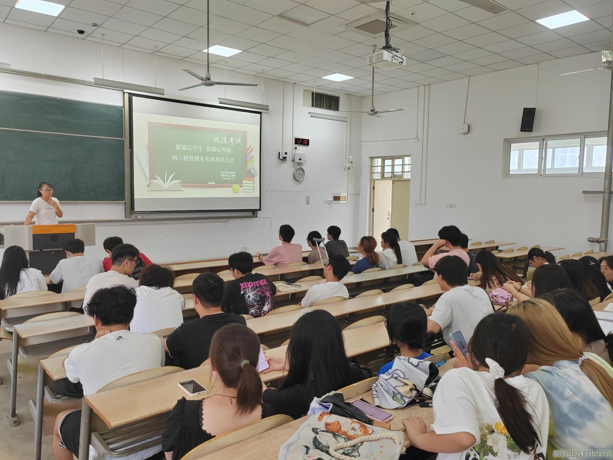 为增强员工的诚信意识,明确诚信考试的重要性,加强学风和考风建设,2024年6月14日中午,公司在教1-401召开2022级英语四六级暨期末考风考纪教育会。会议由辅导员张瑞红主持,150余名员工参加。