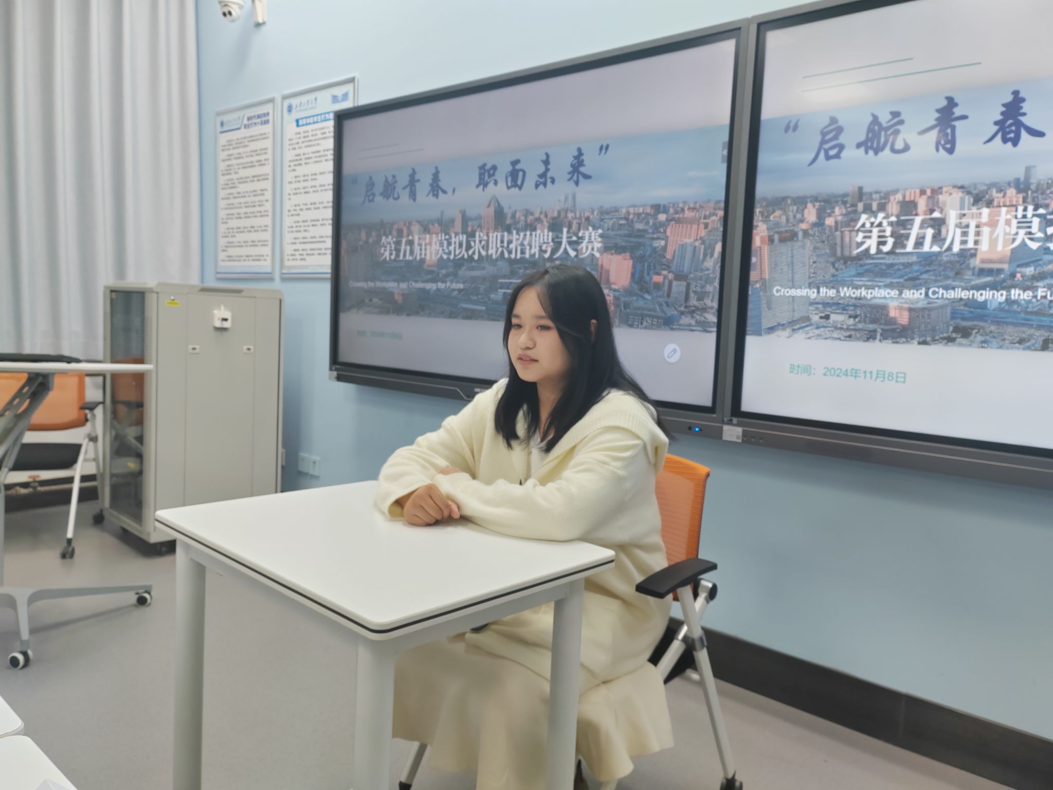 本次大赛从10月下旬开始筹备,初赛经过简历制作的方式,共有10名选手脱颖而出进入到决赛。决赛中采用模拟真实求职过程,选手们通过PPT展示自己的求职意愿、个人优势、职业规划等,并向现场评委展示个人实力和岗位匹配程度。评委从企业的用人需求、专业知识、思维逻辑、求职心态等方面考察了参赛选手的综合素质,并给予一定建议。