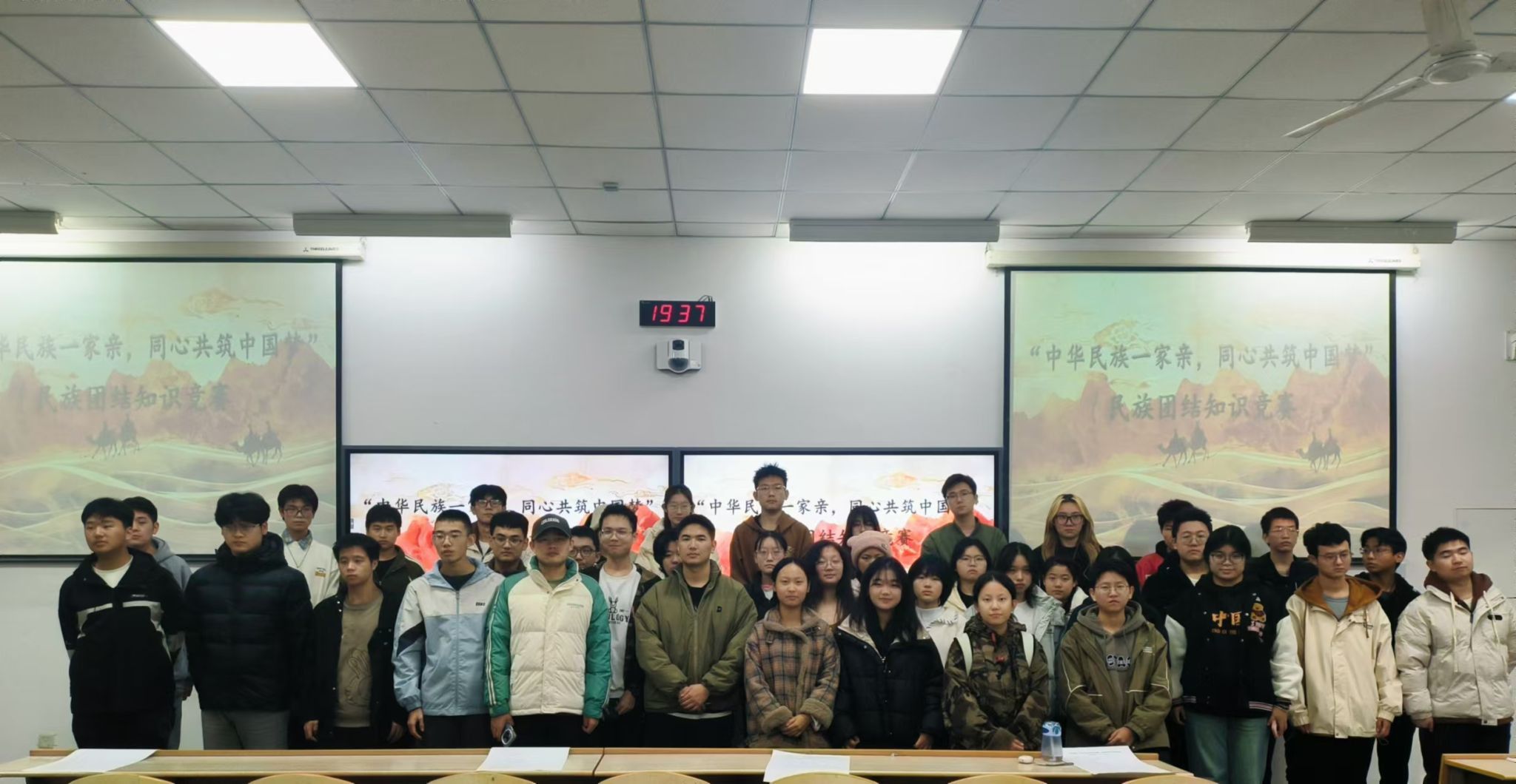 为了加强同学们对民族团结重要性的理解,普及民族政策、民族文化等相关知识,巩固和发展平等、团结、互助、和谐的社会主义民族关系,11月22日晚,公司在教2-109举办了以“中华民族一家亲,同心共筑中国梦”为主题的民族团结知识竞赛活动,活动共计50名同学参加。