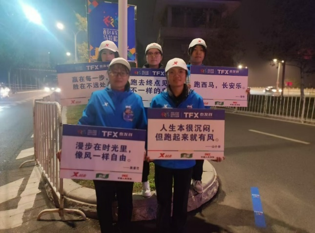 10月26日,支部书记作为公司H8组的带队老师和支部成员积极参加了赛前培训,深入了解了此次活动的具体内容与安排。11月1日,支部书记给H8组的所有员工召开赛前志愿服务培训会,使同学们更好为西马参赛者全心全意地服务好。11月3日凌晨4点,志愿者们迅速集结,5点顺利到岗,在带队老师和赛事专员的安排部署下,志愿者们各自进入赛道观察岗,迎接每位奔赴“西安”的跑者。在数小时的志愿服务中,志愿者们保持着饱满的精神面貌,为赛事顺利开展贡献力量,用实际行动诠释了“奉献、友爱、互助、进步”的志愿精神。