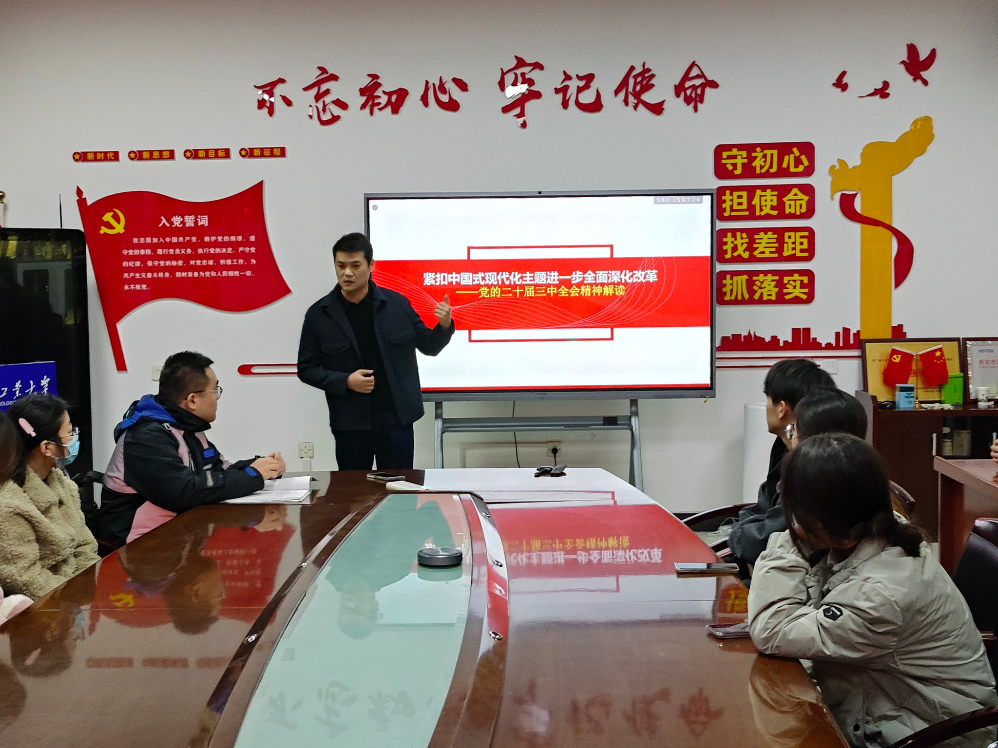 会上,段强带领大家回顾了召开党的二十届三中全会的重大意义和深远影响,并指出全会是在以中国式现代化全面推进强国建设、民族复兴伟业的关键时期召开的一次十分重要的会议。学习过程中,段强与全体党员深入学习《中共中央关于进一步全面深化改革、推进中国式现代化的决定》相关内容,带领大家了解核心要义和精神实质。讨论环节中,支部党员亢林田谈到:要坚持学以致用,把学习贯彻全会精神与做好本职工作紧密结合起来,真正做到互相促进、务求实效;党员王雨婵表示在今后要充实理论知识学习,并与实践活动有效结合起来,提升自身的综合素质,将来为社会的发展积极贡献力量。随后,段强以“你若盛开 清风自来”优秀员工党员能力养成为题,从树立正确三观、提升综合素质、培养创新能力、加强党性修养四个方面开展党课教育,并强调全体党员要筑牢政治忠诚、强化责任担当,深刻领悟“两个确立”的决定性意义,增强“四个意识”、坚定“四个自信”、做到“两个维护”,要始终站在时代前列,保持一名共产党员的先进性和模范性。