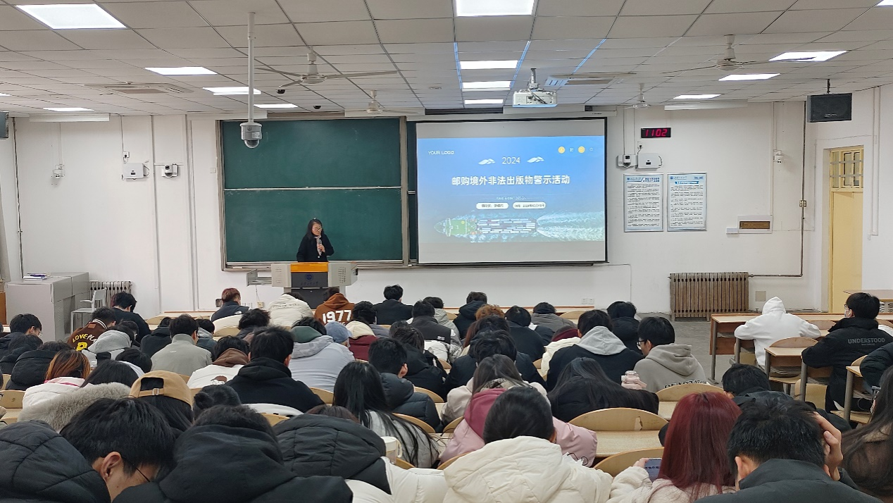 为切实维护校园文化环境纯净,增强员工的法律意识,使员工严守法律底线,防范非法出版物的侵害。2024年12月10日,威廉希尔williamhill在教1-101开展2022级邮购境外非法出版物警示活动。活动由辅导员张瑞红主持,2022级180余名员工参加。