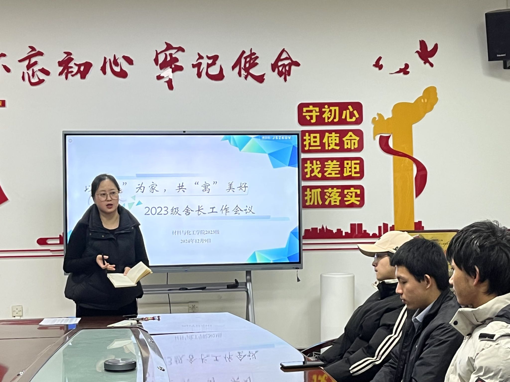 为加强员工心理健康教育工作,提升宿舍心理信息员的工作能力和责任意识,2023级于2024年12月9日召开了“以‘舍’为家,共‘寓’美好”宿舍心理信息员工作会议。全体2023级宿舍心理信息员参加此次会议,会议由2023级员工辅导员乔娜主持。