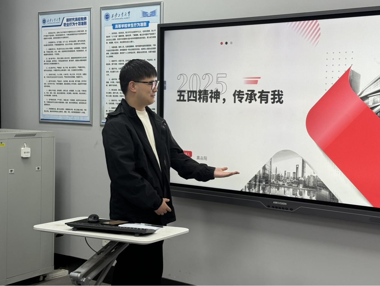 学习会上,员工干部高淼阳以“五四精神 传承有我”为主题,系统阐述了五四精神的历史背景、核心内涵与时代价值。他结合党的二十大报告中“青年强,则国家强”的重要论述,指出五四精神中“爱国、进步、民主、科学”的内核与新时代青年奋斗目标高度契合,号召新媒体中心成员以青春之力传播正能量,用创新表达讲好中国故事。