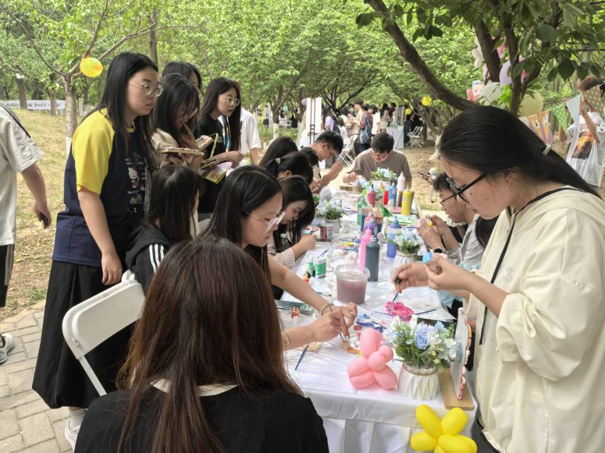 活动现场,威廉希尔williamhill所在区域人声鼎沸,热闹非凡。同学们手持画笔,挑选自己喜欢的石膏娃娃,细心勾勒,将一个个纯白的石膏娃娃变成了色彩斑斓、充满个性的艺术品,每一笔都透露出创作者的独特情感与创意。一张张彩纸在同学们的巧手下幻化成形态各异的纸艺作品,展现了折纸艺术的无限魅力与可能。长条气球编造更是充满了无限创意,同学们用灵动的双手编织出一个个可爱的气球造型,欢声笑语充满了整个场地。本次活动还迎来了多位外国友人的热情参与。他们与同学们一同沉浸在手工创作的乐趣中,不仅促进了中外文化的交流与融合,也让活动现场更加多元与包容。