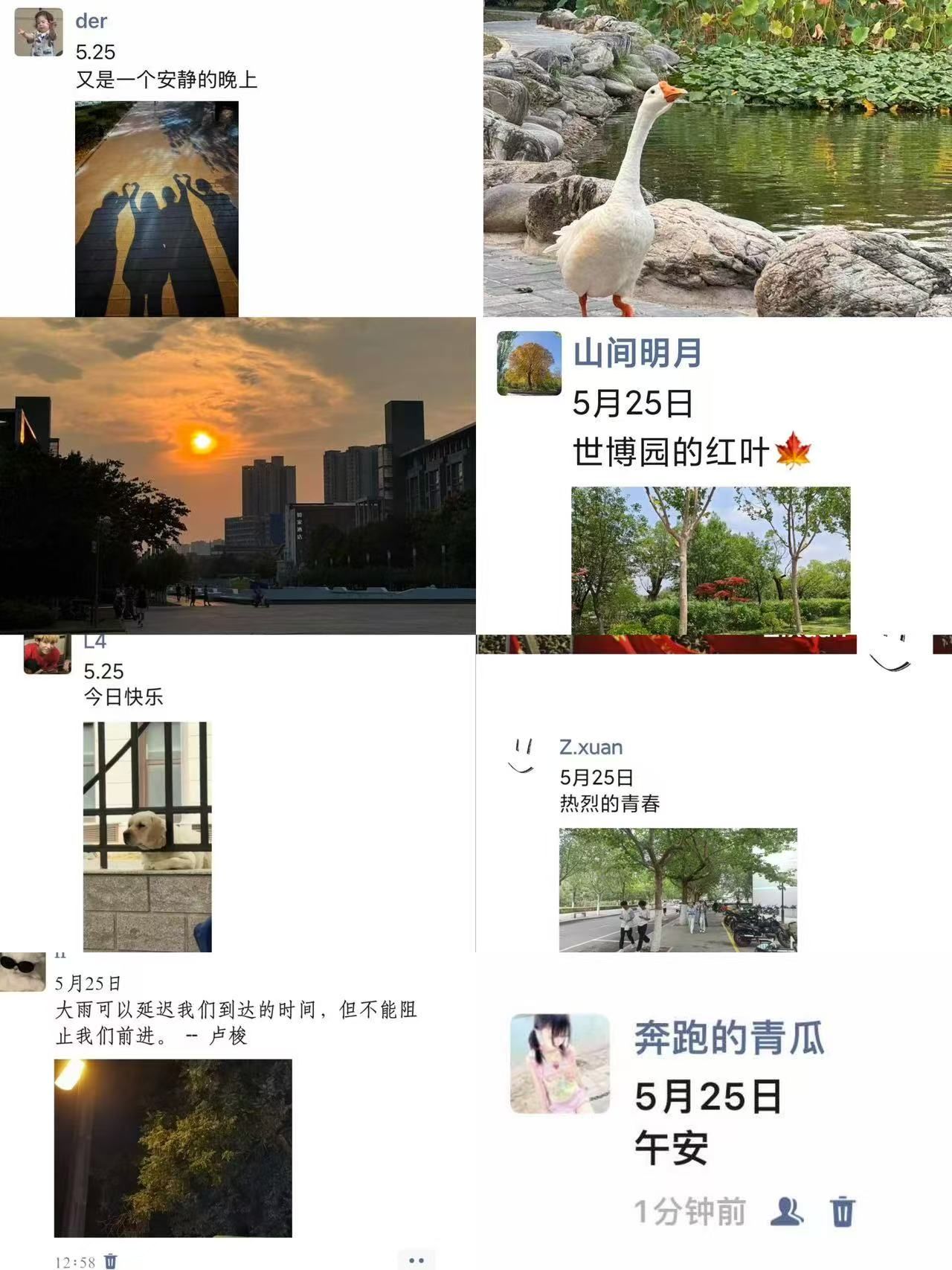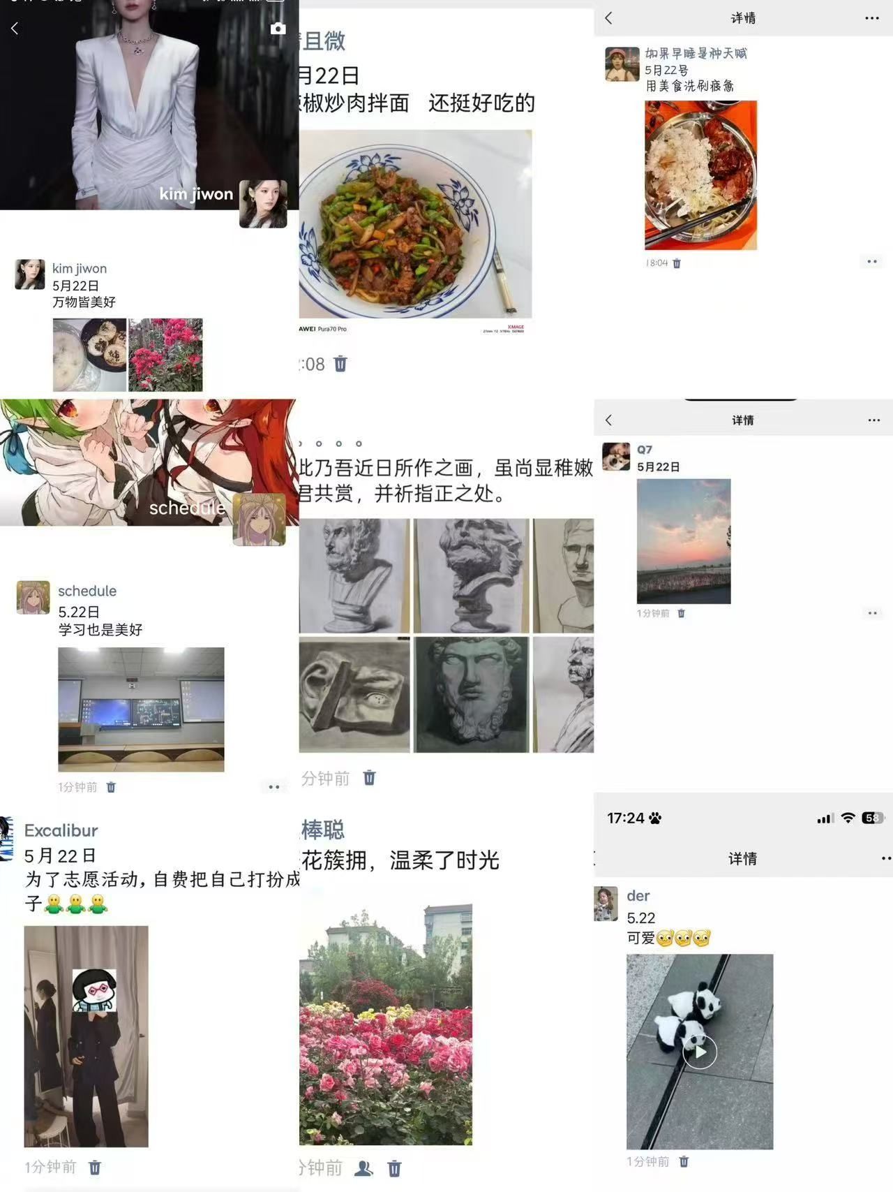 活动以“心打卡”为主题,鼓励员工每日在朋友圈发布一张记录生活美好瞬间的照片或文字,内容涵盖校园风景、学习日常、友情互动等,形式灵活且注重隐私保护。许多同学通过镜头展现了独特的视角:有的记录清晨图书馆的阳光洒在书本上的静谧,有的分享与室友共同完成实验的喜悦,还有的捕捉到校园樱花树下偶遇的温馨场景。这些瞬间不仅成为个人成长的印记,更通过社交平台形成“幸福接力”,潜移默化中缓解了学业压力,增强了心理韧性。