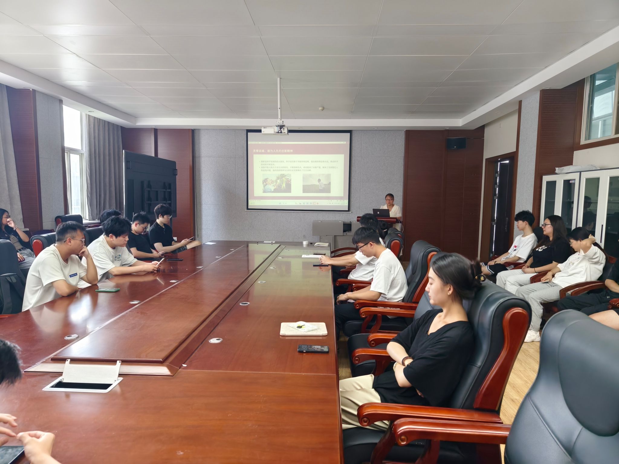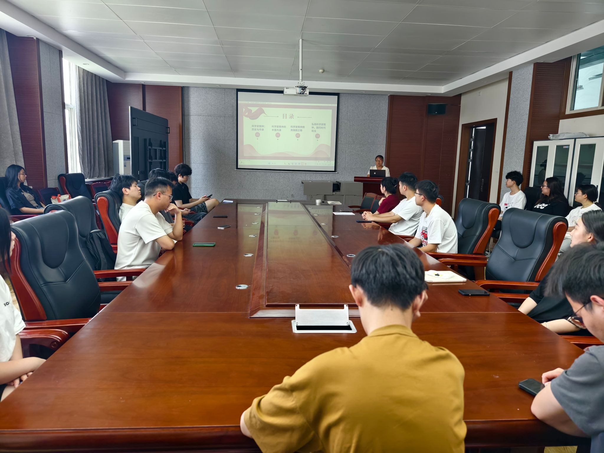 活动中,大家共同回顾了中国科学家的奋斗历程:从李四光创立地质力学筑牢国家资源根基,到钱学森毅然归国助力航天事业起步,先辈们在艰苦环境中坚守科学信仰、矢志报国的事迹令人动容。随后,活动深入解读了科学家精神的丰富内涵,包括:胸怀祖国、服务人民的爱国精神、勇攀高峰、敢为人先的创新精神、追求真理、严谨治学的求实精神、淡泊名利、潜心研究的奉献精神、集智攻关、团结协作的协同精神及甘为人梯、奖掖后学的育人精神。支部书记带领大家立足“实验室”与“强国路”关联,研讨如何以青春之姿践行使命,现场互动热烈,思想火花频现。