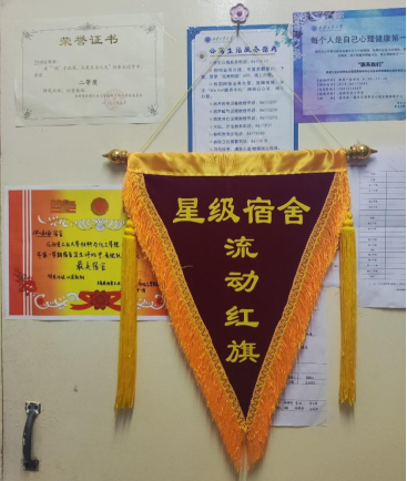在宿舍生活方面,班级每一位同学都自觉维持宿舍整洁,服从宿舍管理,遵守校纪校规,不做违法乱纪的事。有些宿舍更是多次获得流动红旗,被评为十星级宿舍。